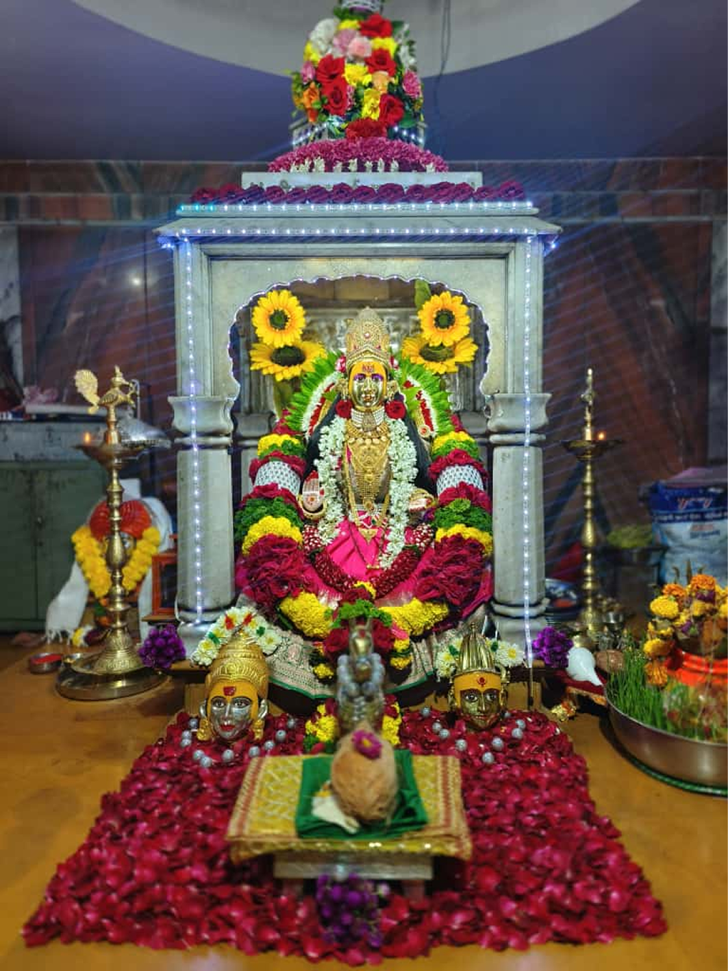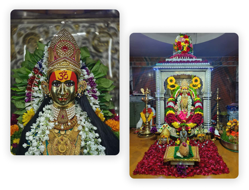 The annual fair (Yatra) is held on the Panchami after Paush Purnima. On this day, the Goddess’s procession (Chhabina) is carried out. The Goddess’s vehicle is a horse, followed by a palanquin, and the event is celebrated with traditional Lezim, Dhol-Tasha, and Shehnai-Choughada music.